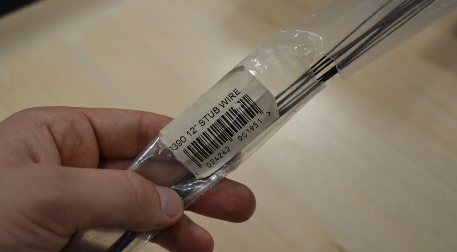 When you’ve drilled your second hole, you can then clip off a piece of wire. It really doesn’t have to be the right size, but go for too long than too short, as you can subsequently shorten the wire down to the appropriate length.