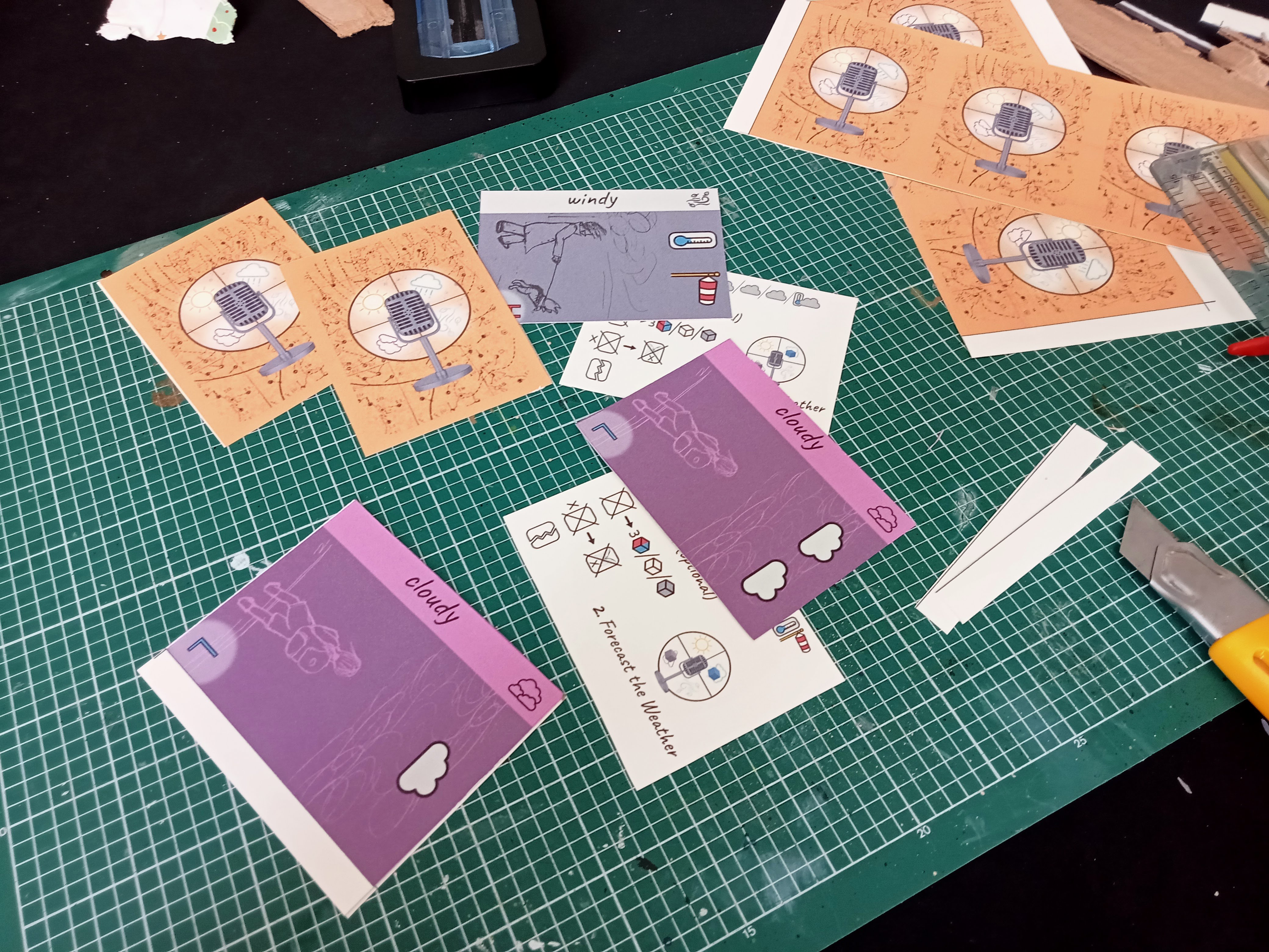 While the glue was drying, I printed the card sheets onto card stock (200gsm), double-sided. I put these into some left-over card sleeves. I found 24 good quality matching sleeves for the main deck, but used some other spares for the “equipment” cards as it doesn’t matter if these don’t match the main deck.