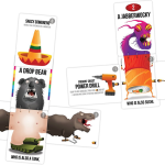 At first, it seems there’s a slightly deeper card management game here than in Exploding Kittens’ ‘Russian roulette but with cards’ premise. Players place down cards to stitch together Frankenstein creations from a mixture of animals, machines and indiscriminate bits of don’t-think-about-it-too-hard. Each starts with a head – be it a shark, mantis shrimp or uni-pug – and can gain a torso, arms and legs, plus tools, building up their strength using a very simple system where each additional card increases the creatures’ overall strength or – more rarely – adds a special ability.