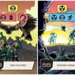 Judge Dredd: The Cursed Earth, themed after 2000 AD’s notorious arm of the law, remains just as punishing and visually breathtaking, swapping lush plant life and colourful creatures for brilliant comic-book artwork from Dredd artists Rufus Dayglo and Dan Cornwell, showcased magnificently on oversized cards.